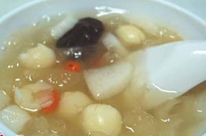 分析:百合味甘,微寒,归肺、心经;能养阴润肺止咳,清心安神。莲子味甘、涩,性平;归脾、肾、心经;有益肾补脾养心之效。加粳米熬煮成粥,具有养心、益气、健脾胃的作用。