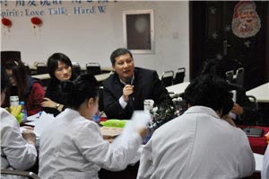 2014年3月11日,台湾童综合医疗社团来我院交流。张胜利博士(童综合医疗社团法人童综合医院行政中心 副主任),詹环如(童综合医疗社团法人童综合医院绩效科 科长),陈桂樱(童综合医疗社团法人童综合医院护理部 副主任),廖国胜(童综合医疗社团法人童综合医院医疗中心 副总经理),李彪(北京中瑞英智医院管理中心 执行长)等专家来我院进行工作指导。