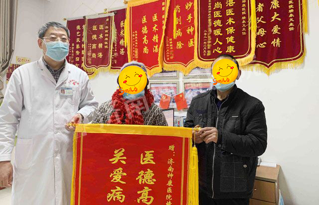 “感谢靖主任,治好了我多年的抑郁症!”1月7日上午,济南神康医院靖永义主任门诊迎来了一位满怀感激的患者。患者刘阿姨手捧着一面锦旗,激动得满含热泪“要不是您的精心治疗,我早就活不下去了,抑郁症太痛苦了……”围观的患者及家属们也被这一幕感染,纷纷称赞靖主任医术精湛。