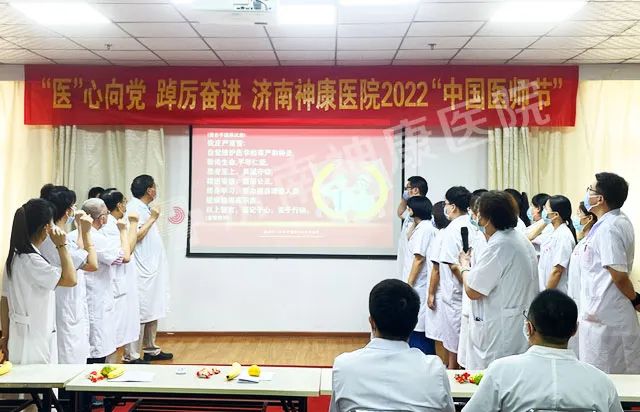 宣誓完毕,神康张院长向广大医师送去节日祝福,她说:“自古以来,医生的头上就有一个神圣的光环,随着时代的发展和变迁,这个光环也被赋予了不同的涵义。作为一名医师,接受的是疾病的考验,守护的是人民的生命,追求的是患者满意,坚持的是医者仁心。健康所系,生命相托。我们的职业,责任与义务比肩,挑战与机遇并存,发展任重而道远。在新的环境与形势下,相信我们会平等待人、认真做事,无愧于白衣战士这一光荣的称号。坚持信仰、从容不迫,不辱救死扶伤的神圣职责。愿我们撒下一路汗水,也能收获一路鲜花。”